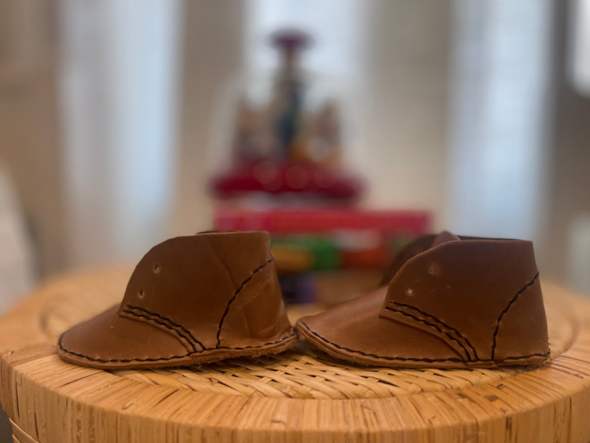 - 5" length of finished sole, intended to fit ages 9-18 months. At 9 months the shoes will fit a little large and will need to be tied with the laces, and at around 18 months the shoes will fit a little snug. The leather should stretch a bit as your child grows!